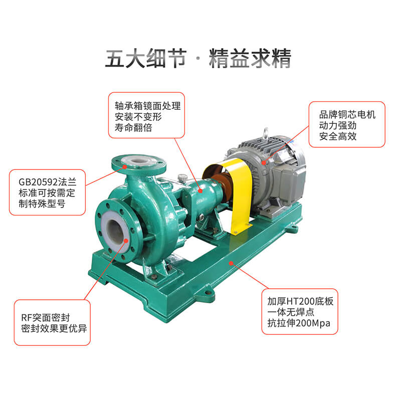 - IHF-SJ氟塑料襯里離心泵在-85℃~200℃溫度條件下長(zhǎng)期輸送任意濃度的硫酸、鹽酸、氫氟酸、硝酸、王水、強(qiáng)堿、強(qiáng)氧化劑、有機(jī)溶劑、還原劑等強(qiáng)腐蝕介質(zhì),是目前重要的耐腐蝕設(shè)備之一。