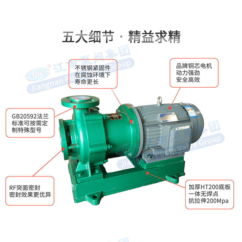 - 該泵具有耐顆粒、抗干磨、高效節能、運行穩定、靜音低振、可靠性高、壽命長等同類氟塑料磁力泵無可比擬的優點,突破了傳統氟塑料磁力泵使用限制,是強腐蝕、有毒、易揮發、易燃易爆、有機溶劑和貴重液體理想的環保輸送設備。