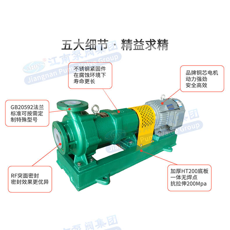 - 該泵具有耐顆粒、抗干磨、高效節(jié)能、運行穩(wěn)定、靜音低振、可靠性高、壽命長等同類氟塑料磁力泵無可比擬的優(yōu)點,突破了傳統(tǒng)氟塑料磁力泵使用限制,是強腐蝕、有毒、易揮發(fā)、易燃易爆、有機溶劑和貴重液體理想的環(huán)保輸送設(shè)備。