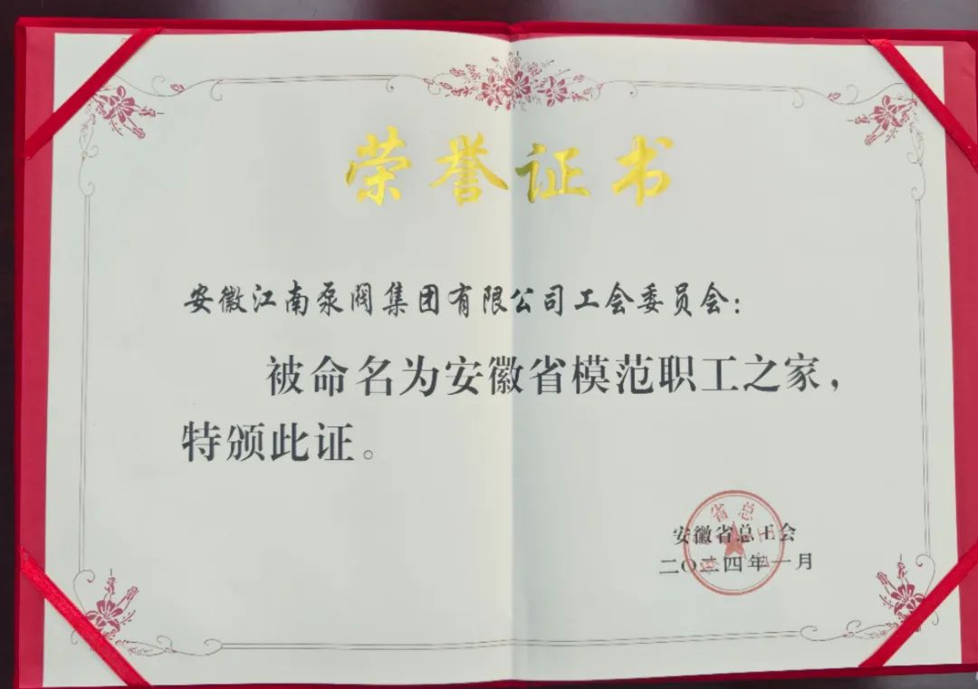 熱烈祝賀!江南泵閥集團工會委員會榮獲“安徽省模范職工之家”稱號