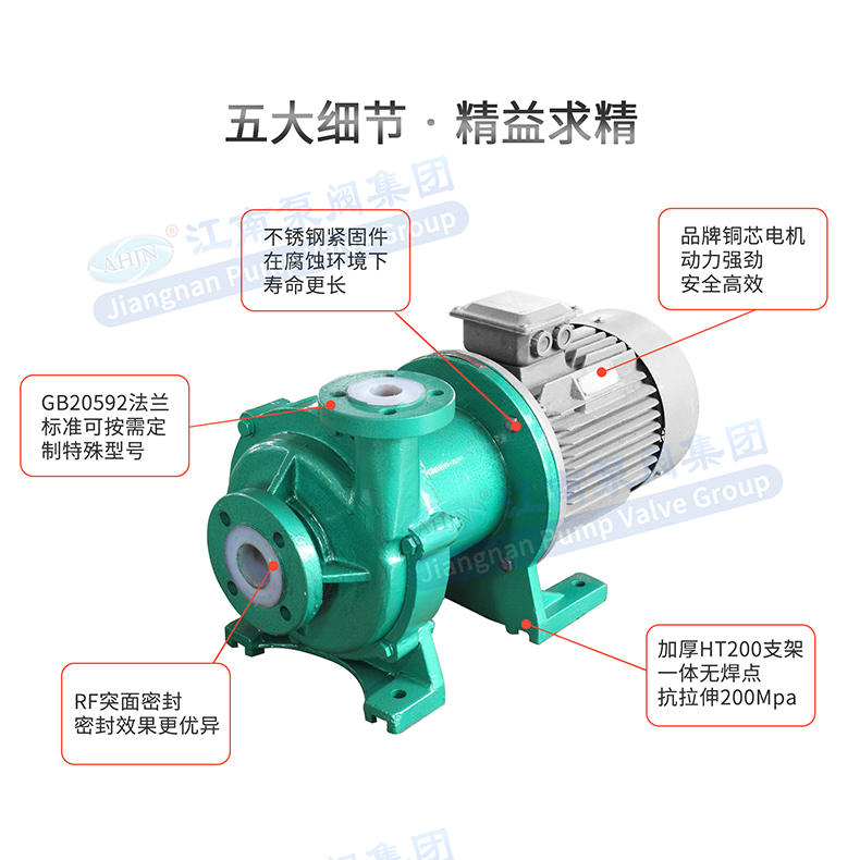 - CQB中型氟塑料磁力泵過流部件采用氟塑料及高純度工業陶瓷制成,具有優異的耐腐性及密封性,因此本產品被廣泛適用于化工、制酸、制堿、冶煉、稀土、農藥、染料、醫藥、造紙、電鍍、電解、酸洗、無線電、化成箔、科研機構、國防工業等行業。