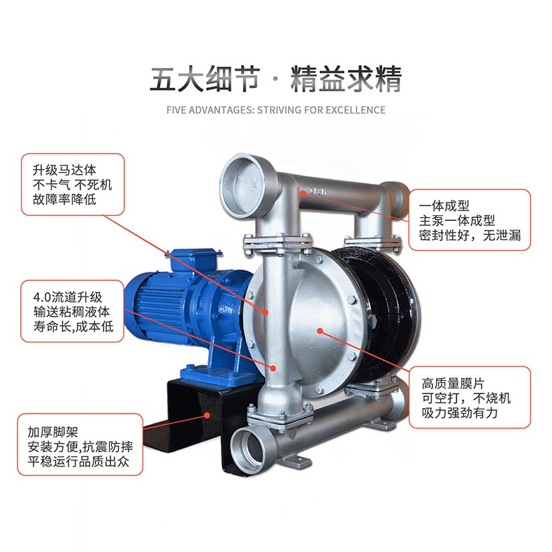 - DBY系列電動隔膜泵,采用擺線針輪減速機傳動,通過曲軸滑塊機構帶動雙隔膜作往返運動,使工作腔容積發(fā)生交替變化,從而達到將液體不斷地吸入和排出。由于本公司生產(chǎn)隔膜材質取得了突破性的進展,大大地延長隔膜的使用壽命,因此被越來越廣泛地替代部分離心泵,螺桿泵來應用于石化、陶瓷、污水、涂料、食品、冶金等行業(yè)。